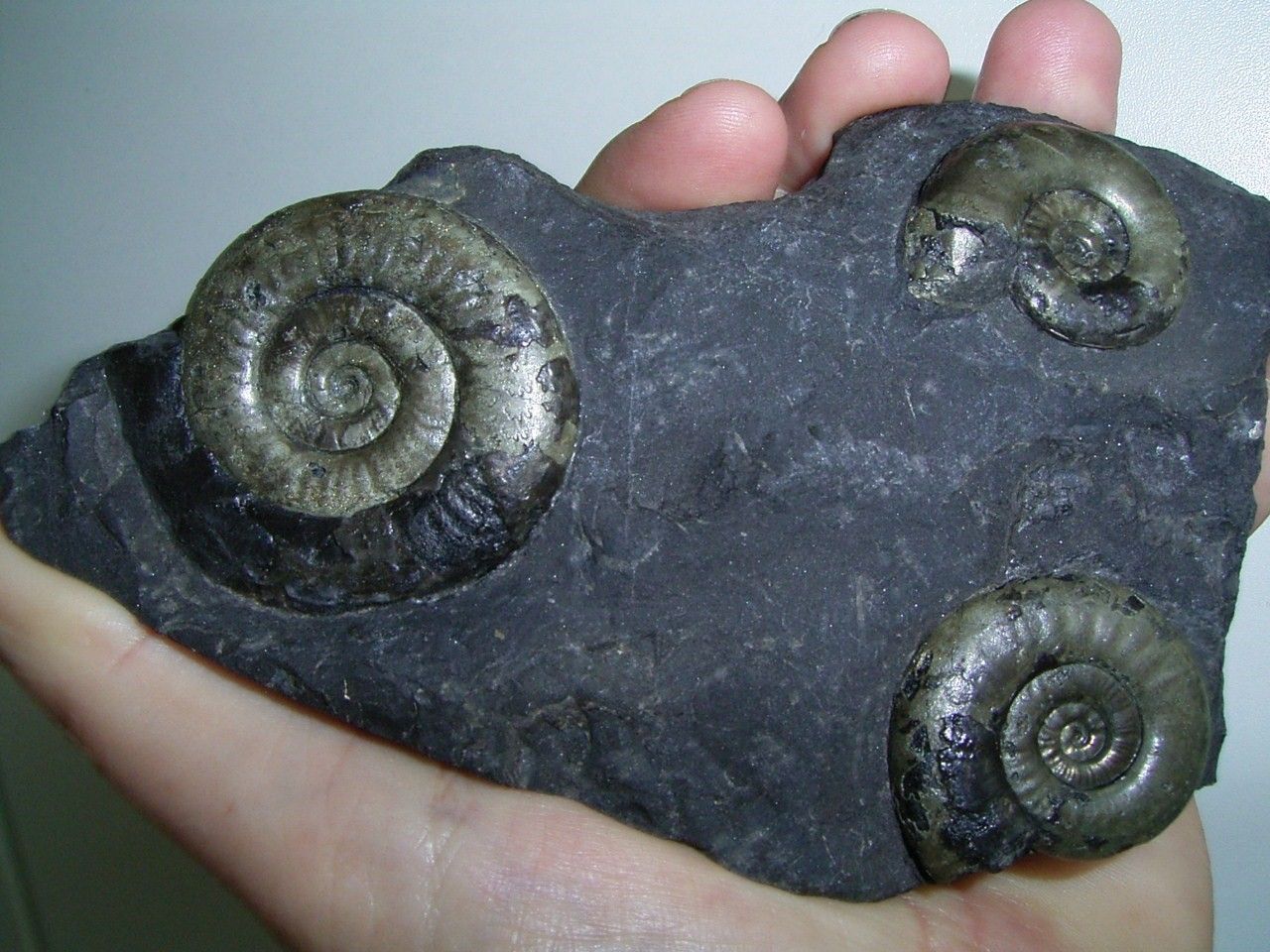 Die Psiloceraten, die in der Westalb über den Neophylliten liegen, treten manchmal häufiger in Erscheinung, sofern man mit etwas Glück überhaupt passendes Gestein dazu entdeckt. Psiloceraten zeigen eine zerschlitztere Sutur wie dieser Psiloceras psilonotum aus der Westalb schön erkennen lässt. Daher sind Neophylliten von den Psiloceraten auch durch den weniger geübten Ammonitensammler unterscheidbar.